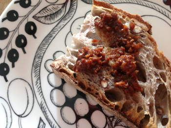 2 オリーヴオイルとネーブルジャムをどんとのせて